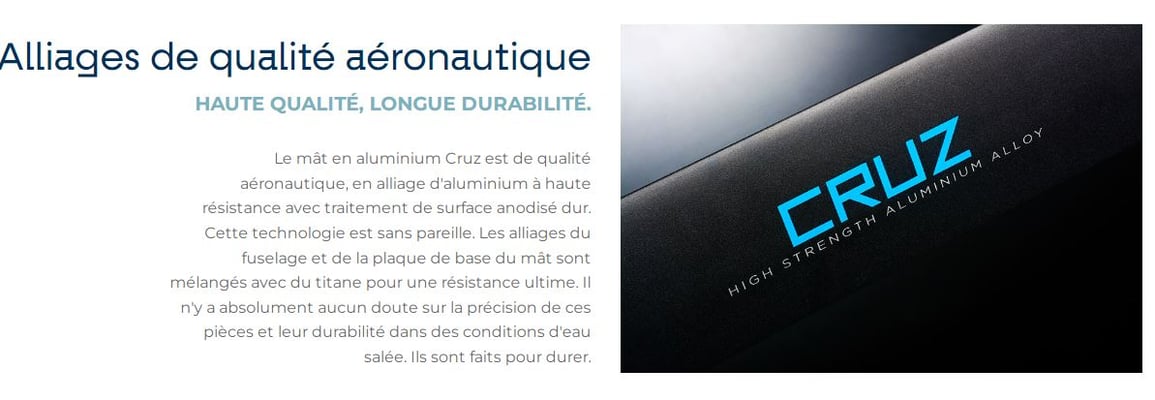 Mât & Fuselage du kitefoil en aluminium de haute qualité, monobloc T6061, très dense anodisation (60microns)