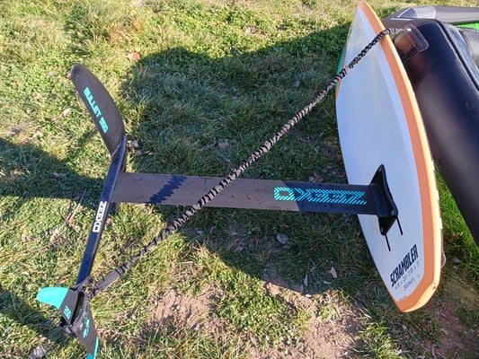 Foil Crazy Fly Cruz 690 ou 1000 ou 1200, avec housses de protections des ailettes + outils + teef gel . Board Crazy Fly Chill 130 cm ou 115 cm ( pour débuter la 130 cm est parfaite) + 3 straps